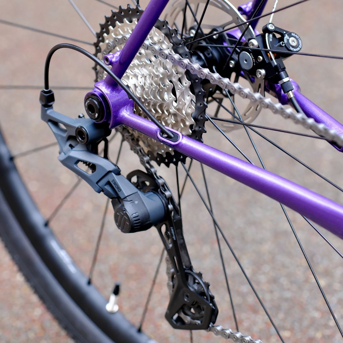 Le cadre est assemblé avec un groupe Microshift Sword 2x10, des freins Growtac Equal et une paire de roues rayonnées à la main à partir de composants Mavic haut de gamme.